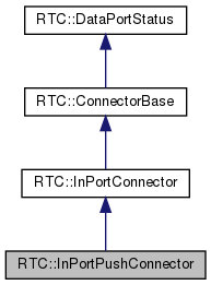 InPort の push 型データフローのための Connector クラス。このオブ ジェクトは、接続時に dataflow_type に push が指定された場合、 InPort によって生成・所有され、OutPortPushConnector と対になって、 データポートの push 型のデータフローを実現する。一つの接続に対して、 一つのデータストリームを提供する唯一の Connector が対応する。 Connector は 接続時に生成される UUID 形式の ID により区別される。