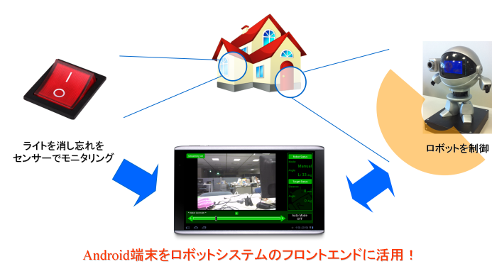 RTM on Androidは、Android OSに対応したRTミドルウェアです。 RTM on Android を用いることで、ロボットやセンサがAndroid端末と連携するシステムを 迅速かつ安価に作成することが可能になります。