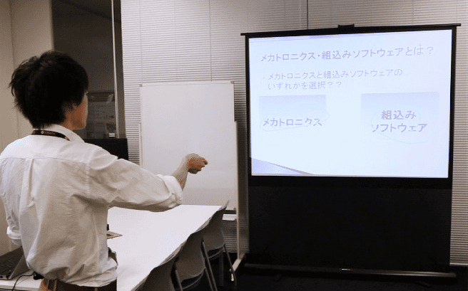 自身のアイディアや自社製品の魅力、研究成果の意義などを伝える上でプレゼンテーションは欠かせない手段となっています。プレゼンテーションはスライドを用いて行うことが一般的となっていますが、スタイルが画一化されていることもあり、注目を集めたり印象を残したりすることは容易ではありません。 本展示では、RTを利用することで、より効果的・魅力的なプレゼンテーションを実現するためのプレゼンテーション支援コンポーネント群を紹介します。 なお、本アプリケーションは、RTミドルウエアを用いた、コンポーネント指向のロボットシステム構築技術の教育にも用いられています。