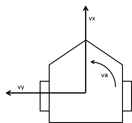 struct Velocity2D { double va; // 角速度 [rad/s] double vx; // 並進速度(前方) [m/s] double vy; // 並進速度(横方向) [m/s] 対向2輪型では0 }; struct TimedVelocity2D { Time tm; Velocity2D data; };対向2輪型移動ロボットでは、vyは常に0.0であると考え、たとえば直進なら
