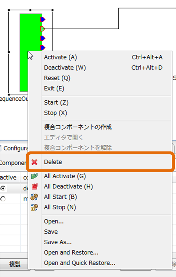 RTC を削除するには、RTCを選択し Delete ボタンを押下するか、コンテキストメニューから Delete を押下してください。