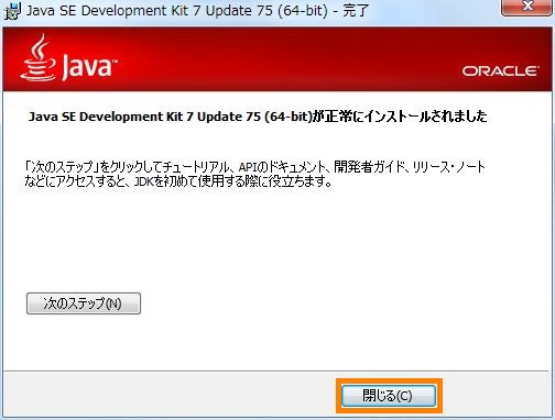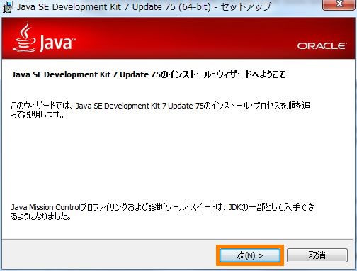 ダウンロードしたファイルを実行するとインストールが開始されます。途中、使用許諾やインストール先などを聞かれますので、お使いの環境に合わせて設定してください。 下記のインストール説明画像は JDK7 のものです。